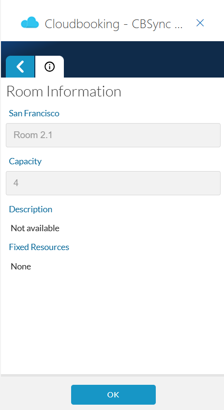 Selecting the ‘i’ button on the top right corner of the room button will show you information regarding that room, such as description, fixed resources.