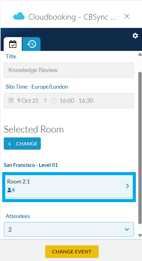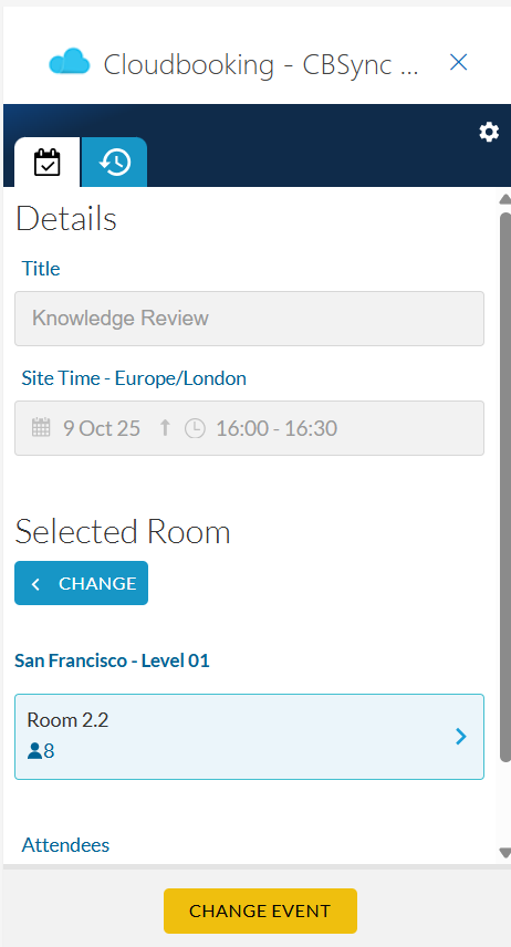 Once you have the Cloudbooking add-in open you can change the date, time and add/remove attendees directly in the Outlook invite and you shall see the changes reflected in the add-in.