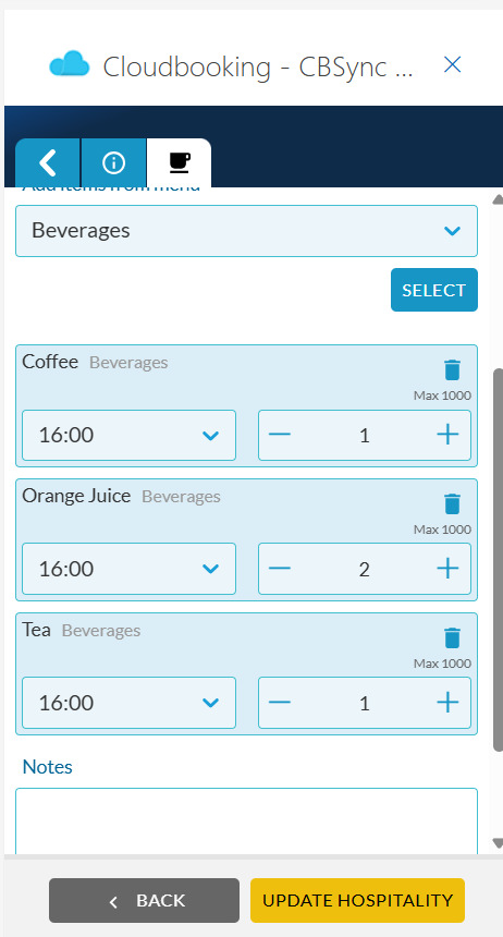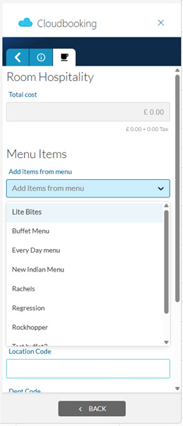 If you wish to add hospitality to a multi-room booking please complete your booking as shown above, then add hospitality from within the Cloudbooking Portal via a browser.