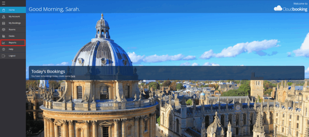 Firstly, log into your Cloudbooking account via your Portal URL and select ‘Reports’ from the menu on the left.