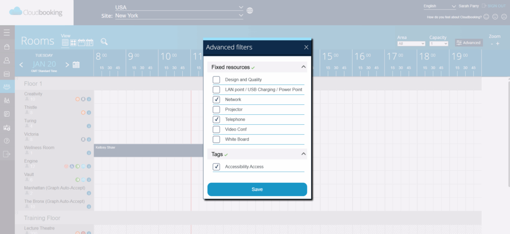 You can choose to further refine your search by using the filters to select only rooms with the fixed resources you require or if a room is tagged as being accessible for wheelchair users.