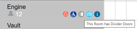 This example shows a room capacity of 12 with six places in the adjoining room so if you select for the divider doors to be closed, the capacity will remain at 12